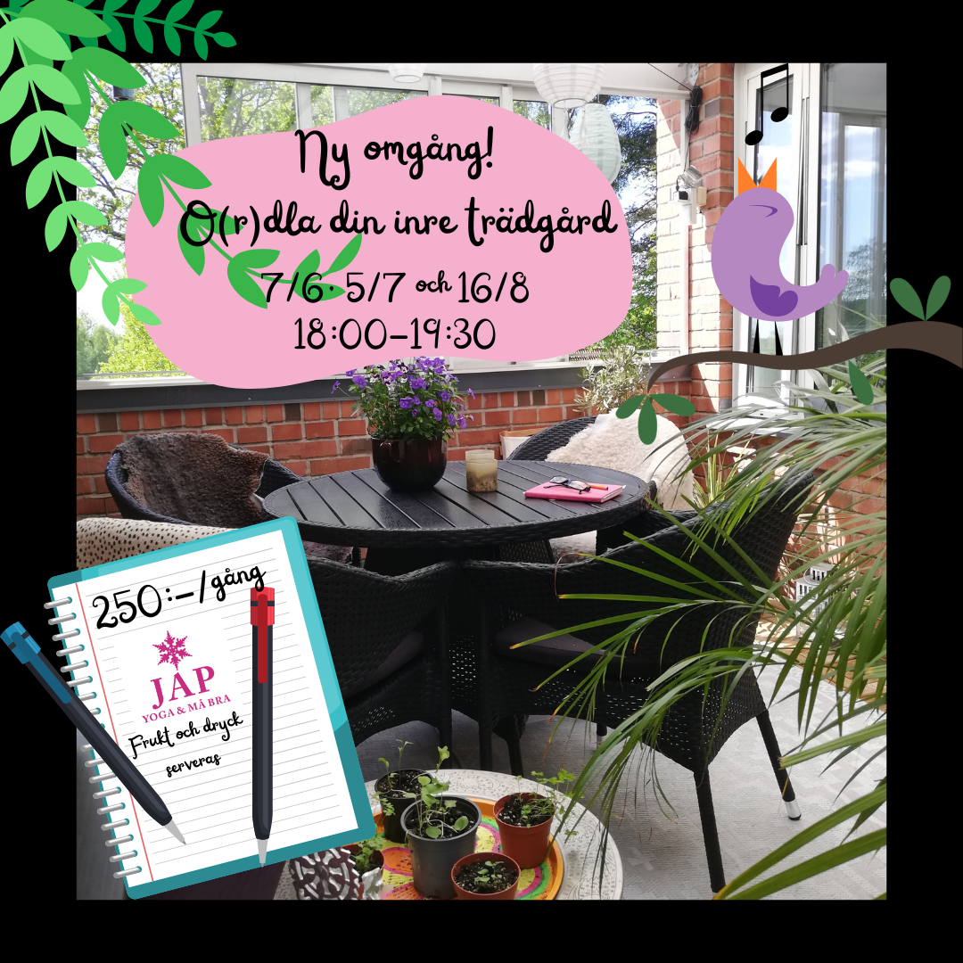 Från och med vårterminen 2026 pausar jag på obestämd tid mina terminskurser i yoga. Jag erbjuder istället tillfälliga yogaklasser och workshops i både yoga och reflekterande skrivande. För att inte missa något - prenumerera på mitt nyhetsbrev!